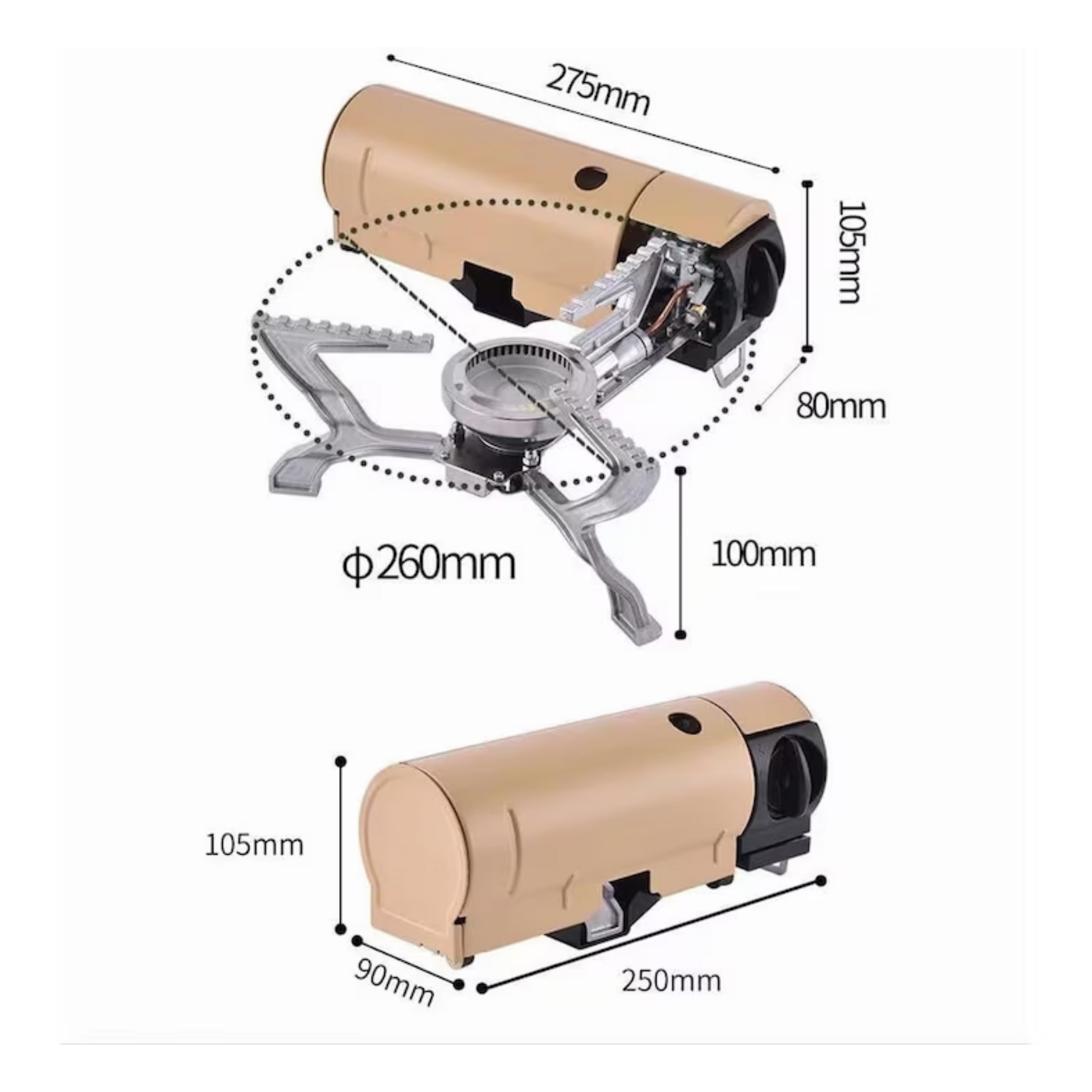 Aragazul mini portabil pliabil este solutia perfecta pentru gatitul in aer liber, oferind portabilitate maxima si eficienta ridicata. Ideal pentru camping, drumetii, pescuit sau excursii, acest aragaz este usor de utilizat si transportat datorita designului sau pliabil si greutatii reduse.