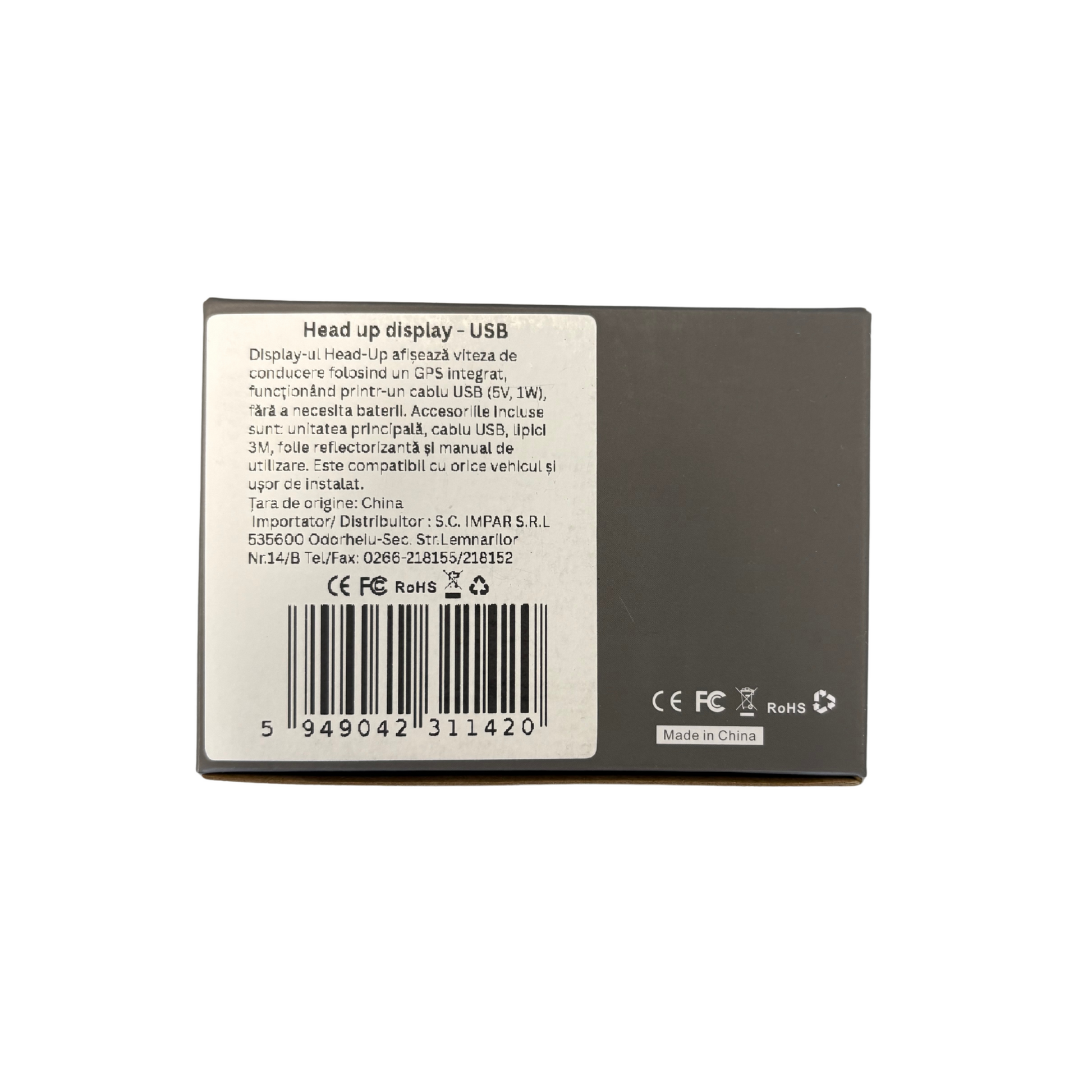 Head-Up Display Carmax cu conexiune USB și GPS oferă o vizualizare clară a vitezei, direcției și altor informații esențiale direct pe parbrizul vehiculului. Acest dispozitiv ajută șoferii să își mențină atenția pe drum, reducând riscul de distragere a atenției și îmbunătățind siguranța în trafic.