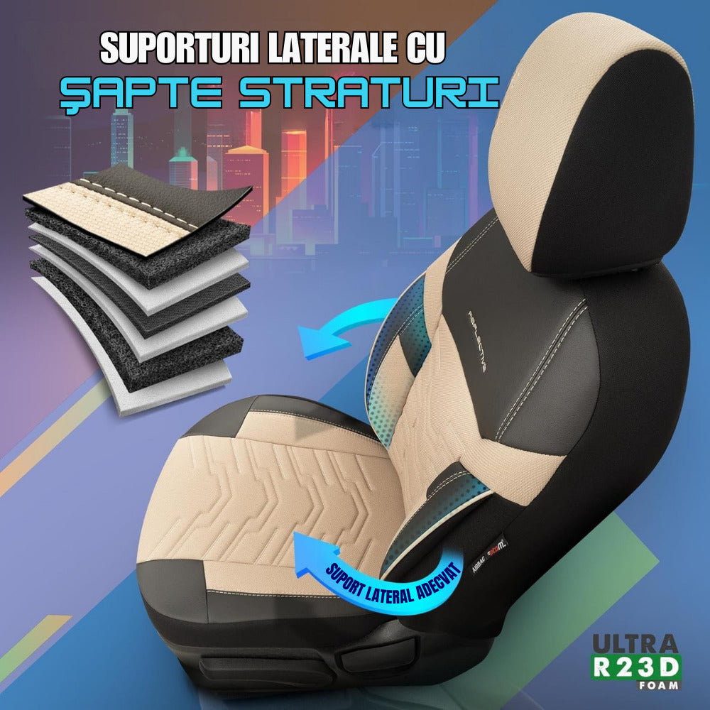 Design ortopedic cu 7 straturi: Ofera suport lombar si sporeste confortul in timpul calatoriilor lungi, contribuind la o experienta de condus placuta.