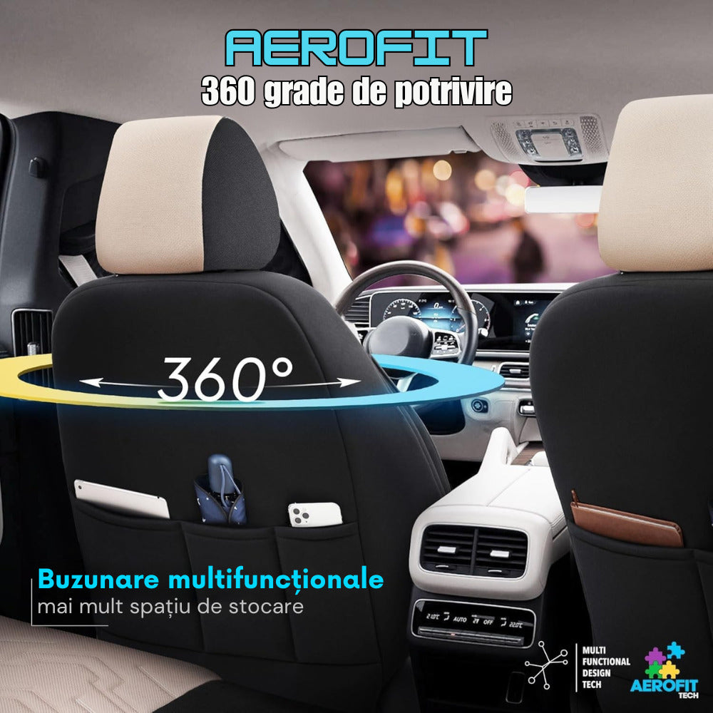 Compatibilitate universala: Datorita designului multifunctional al banchetei si tehnologiei zip-up din spate, husele sunt compatibile cu majoritatea tipurilor de scaune din spate, fiind prevazute cu fermoare triple pentru o ajustare optima.