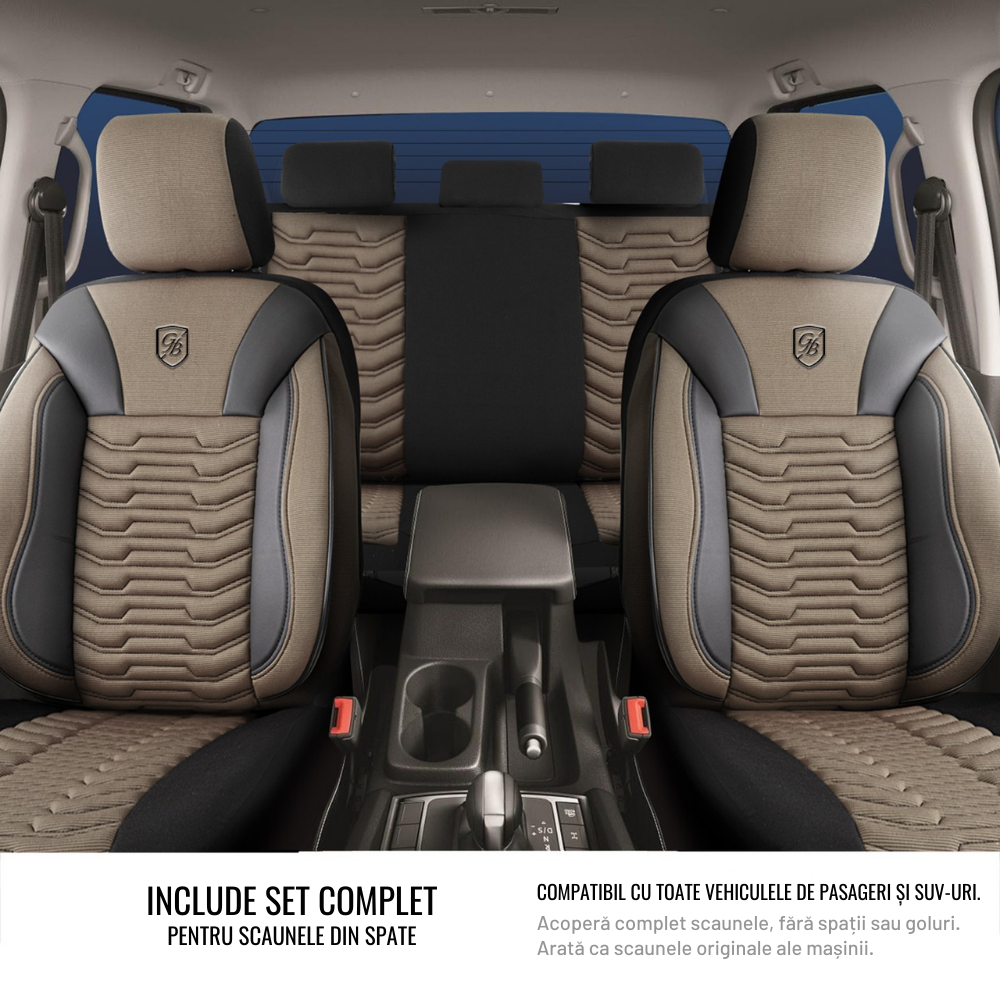 📦 Set complet pentru toate scaunele masinii – include huse pentru fata si spate, pentru un interior perfect protejat si uniform. ✅