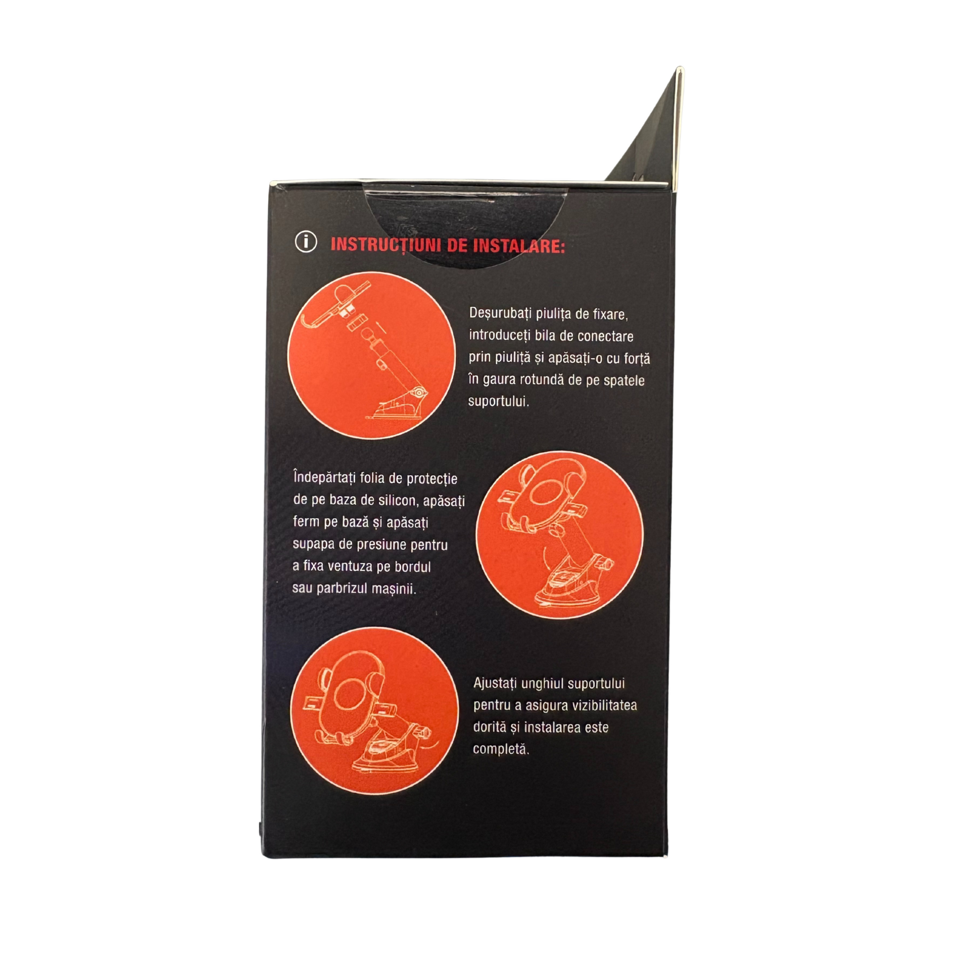 Montare: ventuză puternică pentru fixare pe parbriz sau bord